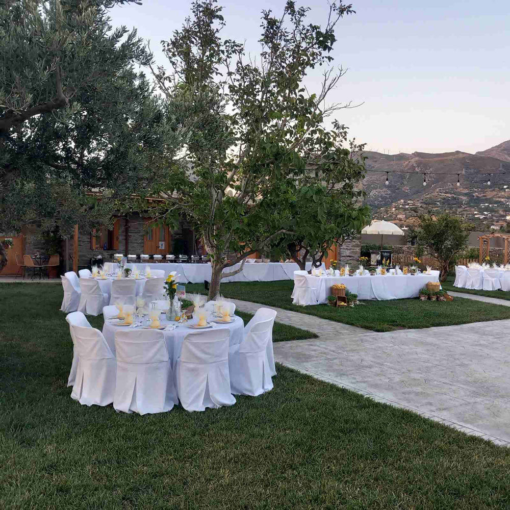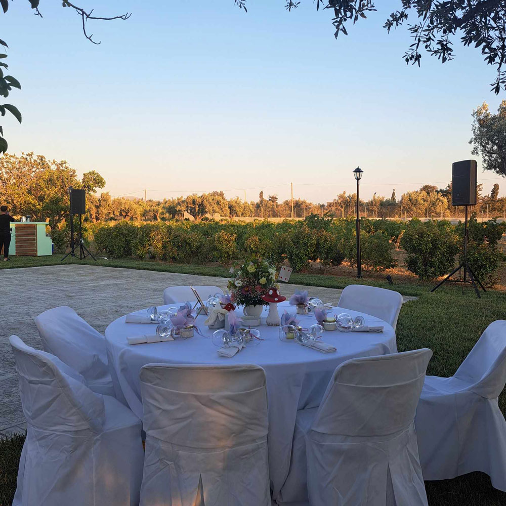Κατάλληλο για εκδηλώσεις μέχρι 400 άτομα, το κτήμα μας προσφέρει τον ιδανικό χώρο για γάμους, βαπτίσεις και άλλες σημαντικές στιγμές της ζωής σας. Οι ευχάριστοι και επαγγελματίες συνεργάτες μας είναι πάντα στη διάθεσή σας, έτοιμοι να ανταποκριθούν σε κάθε σας ανάγκη και να οργανώσουν την εκδήλωσή σας με προσοχή στη λεπτομέρεια.