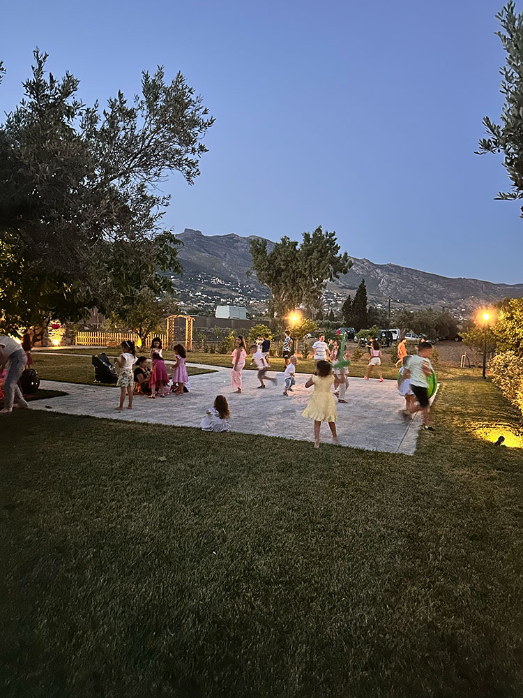 Οι μικροί μας φίλοι αξίζουν στιγμές ανεμελιάς σε έναν ασφαλή και μαγευτικό χώρο. Το κτήμα προσφέρει άπλετο χώρο για παιχνίδι, εξερεύνηση και δημιουργικές δραστηριότητες στη φύση, καθιστώντας το ιδανικό για αξέχαστα παιδικά πάρτι γεμάτα χαμόγελα και περιπέτεια.